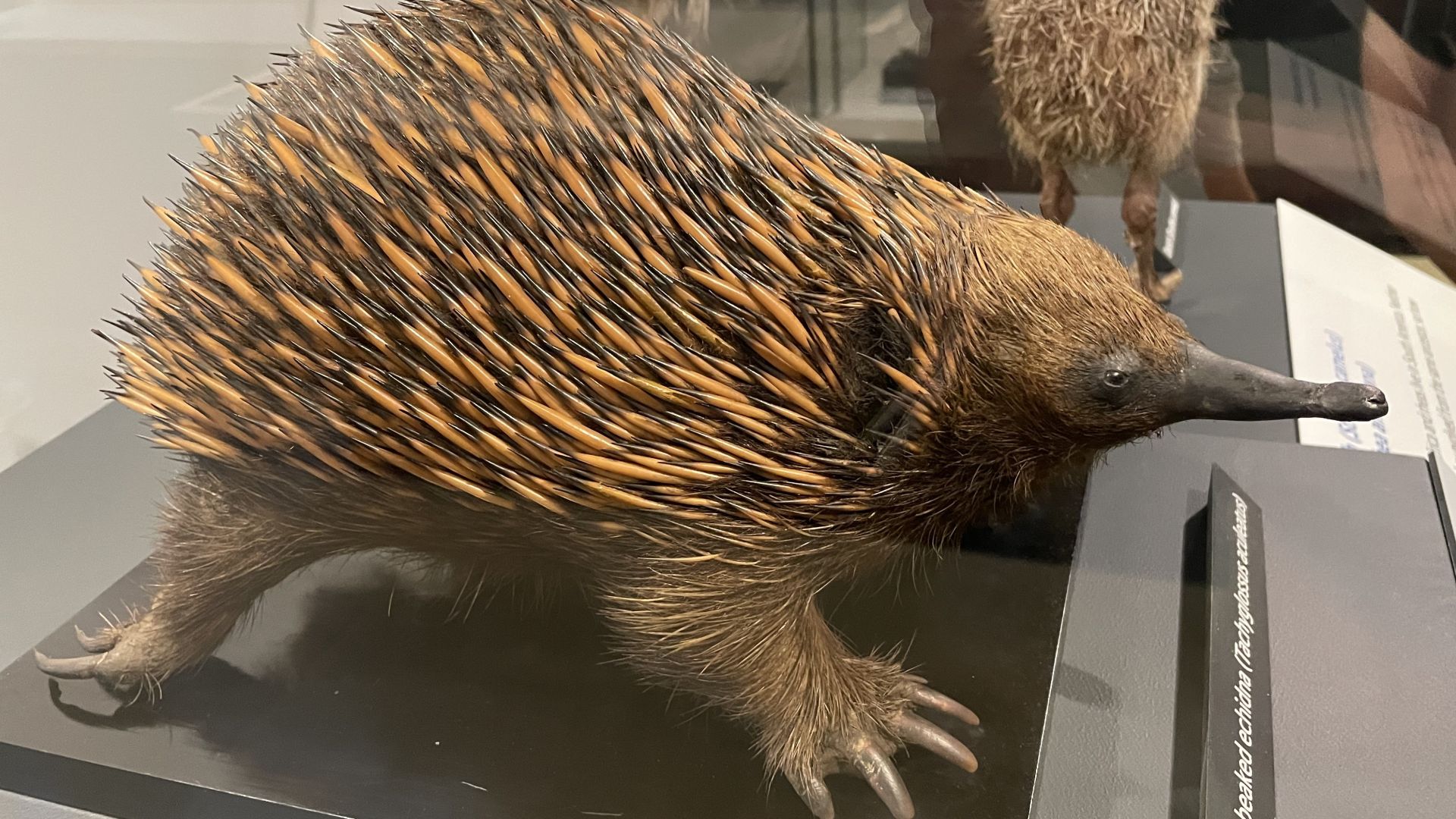 L'échidné est un petit animal étrange et à part car comme l'ornithorynque il fait partie de l'ordre des monotrèmes, des mammifères qui ont la particularité de pondre des oeufs (mais qui allaitent ensuite leurs petits). Autre caractéristique qu'il partage avec son cousin à bec de canard : les mâles sont dotés d'éperons venimeux sur leurs pattes postérieures, une particularité que l'on pense héritée des mammifères primitifs. Il se nourrit essentiellement de fourmis et termites qu'il capture avec sa longue langue visqueuse à la manière des fourmiliers. Son corps est recouvert de solides piquants et quand il se sent menacé il se roule en boule et s'enfonce dans le sol. Il existe 3 espèces d'échidnés : une en Australie, l'échidné à nez court (ou bec court) (Tachyglossus aculeatus), et deux espèces qui vivent en Papouasie-Nouvelle-Guinée, l'échidné à long nez (Zaglossus bartoni) et l'échidné à long nez de Sir David (Zaglossus attenboroughi).