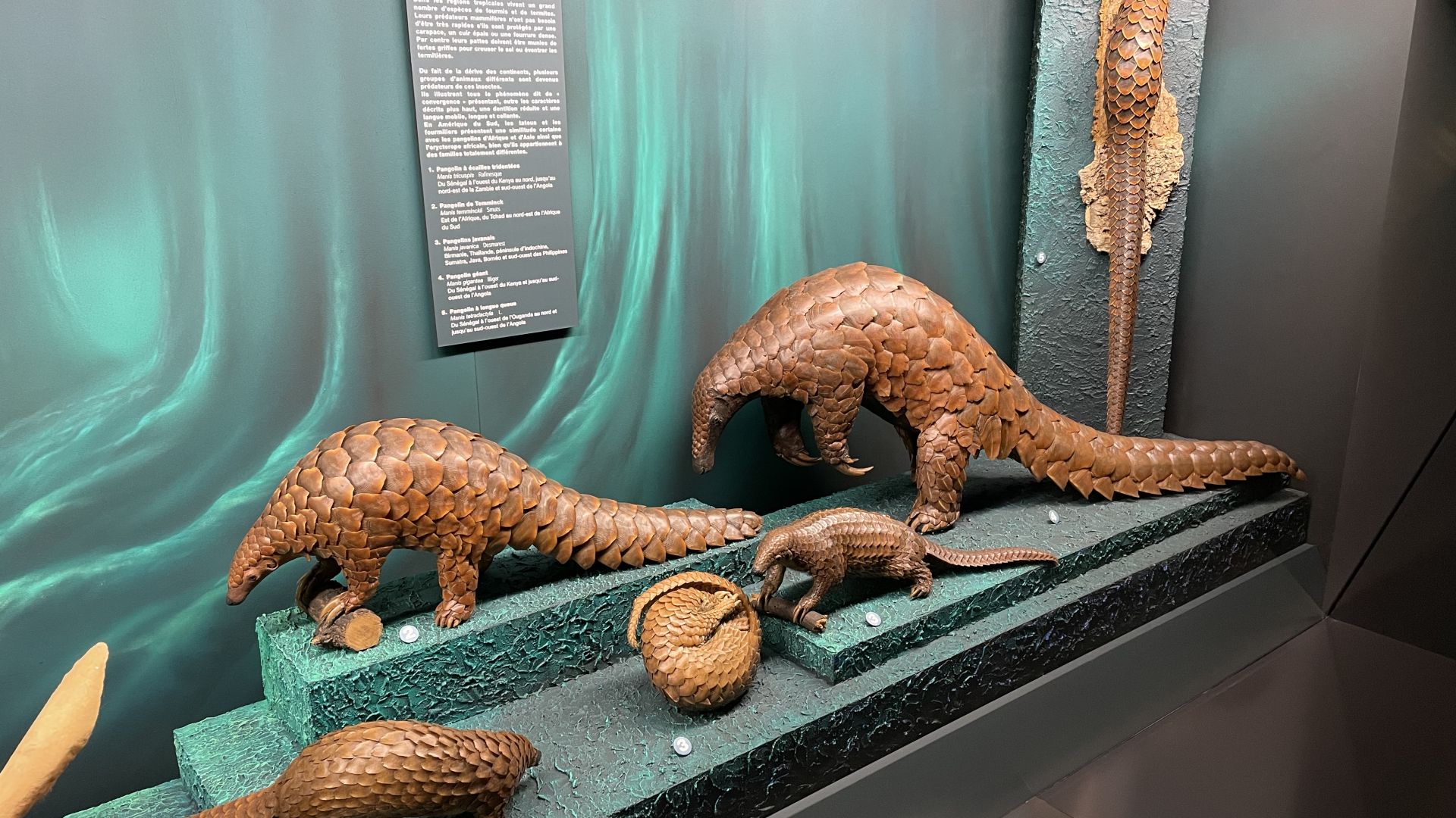 Le pangolin est un animal solitaire, nocturne et timide qui se nourrit de fourmis et de termites. Seul mammifère doté d'écailles en kératine qui couvrent la quasi totalité de son corps à l'exception de son museau et son ventre, il est doté d'une langue immense recouverte de salive visqueuse qui lui permet de fouiller les termitières pour en retirer les insectes vivants. Quand il se sent menacé, il se roule en boule sur lui-même et hérisse ses écailles à la manière d'un hérisson. Au sol il se déplace dressé sur ses pattes arrières et sa queue lui sert de balancier ; dans les arbres (pour les espèces arboricoles) elle lui sert à s'agripper aux branches. Il existe plusieurs espèces de pangolins (cf Photo 2) toutes très menacées. Pour mieux connaître cet animal étrange, lisez notre article Anigaïdo sur les pangolins.