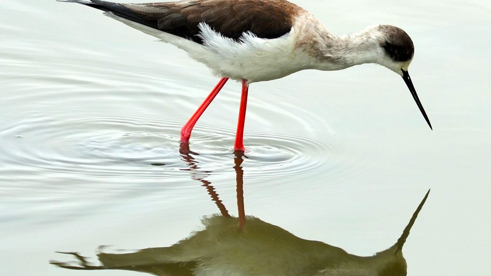 Proche de l'avocette élégante, l'échasse blanche (Himantopus himantopus) est comme elle un oiseau aquatique inféodé aux marais. Perchée sur ses longues et fines pattes rouges, la belle se déplace avec grace dans l'eau et jusqu'au ventre si nécessaire pour trouver les petites bêtes dont elle se nourrit. Elle peut plonger sa tête sous la surface pour les attraper et nager avec aisance. Oiseau migrateur qui passe l'hiver en Afrique et dans le sud de la péninsule Ibérique, elle revient nidifier au printemps dans ses zones de prédilection qui en France sont essentiellement des salins, deltas et marais d'eaux saumâtres proches des zones côtières. Elle vit en couples évoluant au sein de colonies parfois réduites mais qui peuvent compter jusqu'à une centaine d'individus. Quand les parents défendent le nid, ils peuvent simuler une blessure à l'aile pour éloigner le prédateur. Les zones sombres à l'arrière du crâne et de la nuque ne sont pas un marqueur du sexe de l'échasse.