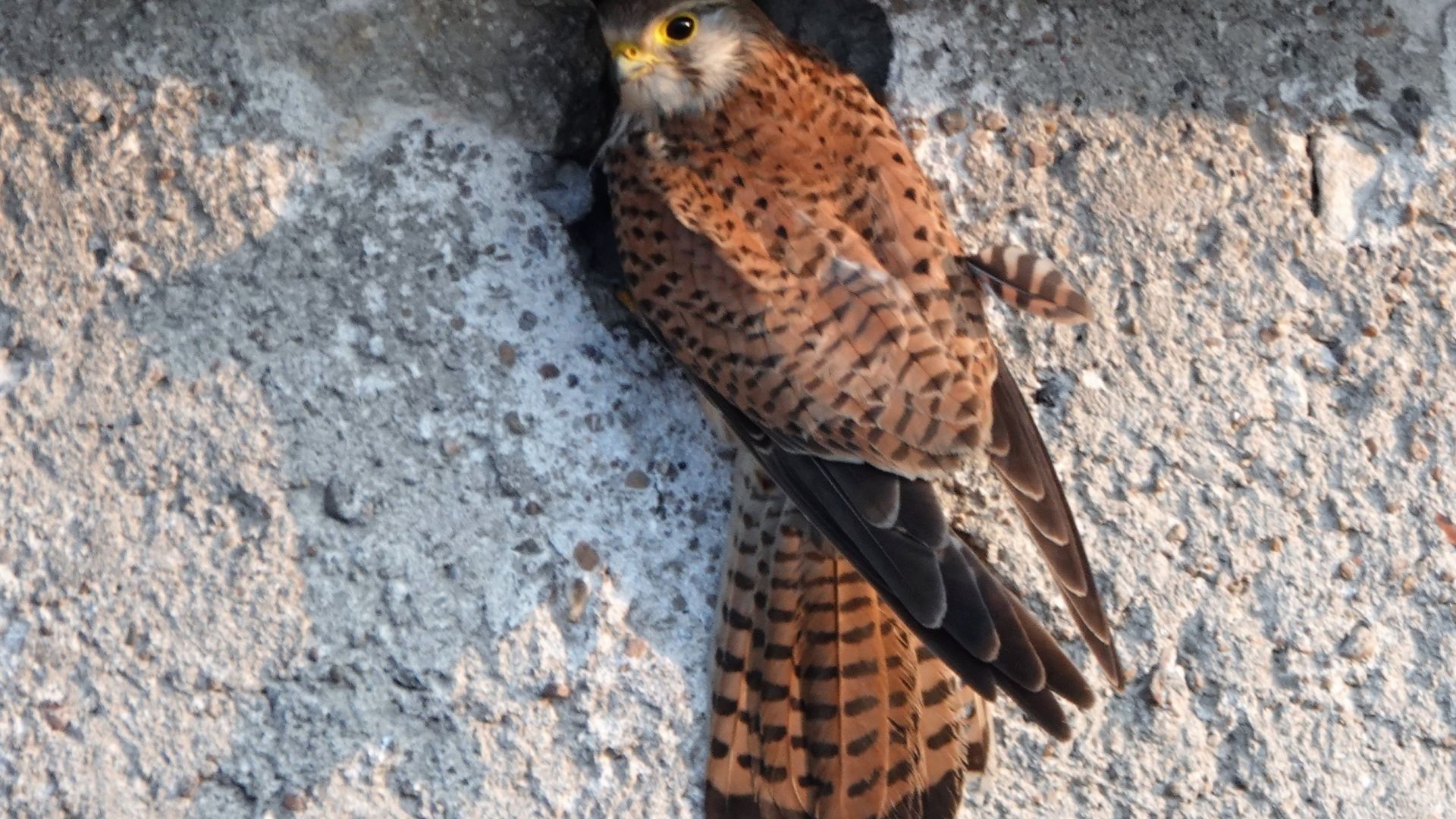 Le faucon crécerelle (Falco tinnunculus) est un rapace de taille moyenne que l'on voit souvent se maintenir en vol stationnaire au-dessus des champs et prairies dans une attitude caractéristique, scrutant le sol depuis le ciel avant de fondre sur sa proie et la transpercer de ses serres acérées. Il chasse diverses espèces de rongeurs ainsi que des insectes. Le mâle du faucon crècerelle se distingue de la femelle par les plumes de sa tête qui sont de couleur gris-bleu. Présent en Afrique, en Asie et en Europe, le faucon crécerelle peut être migrateur ou sédentaire selon la lattitude où il s'établit. Même si il est assez commun, le faucon crécerelle peut localement être plus rare. Bien que protégé, il est considéré comme une espèce menacée dans plusieurs régions françaises.